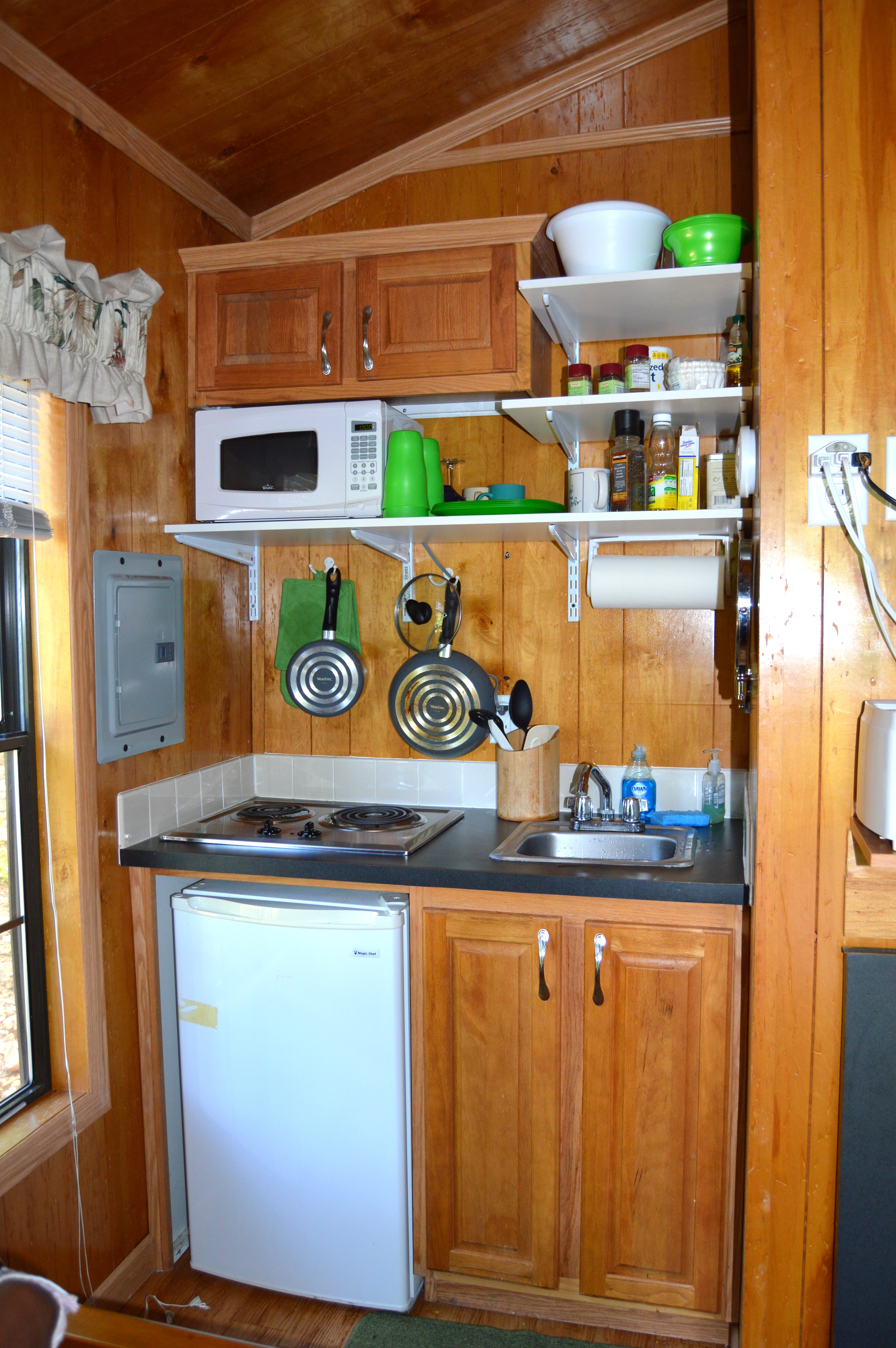 the Little Bitty cabin [its actual name] was so cozy. if you know me, you know that I love miniature things.the kitchen had everything we needed for delicious meals.