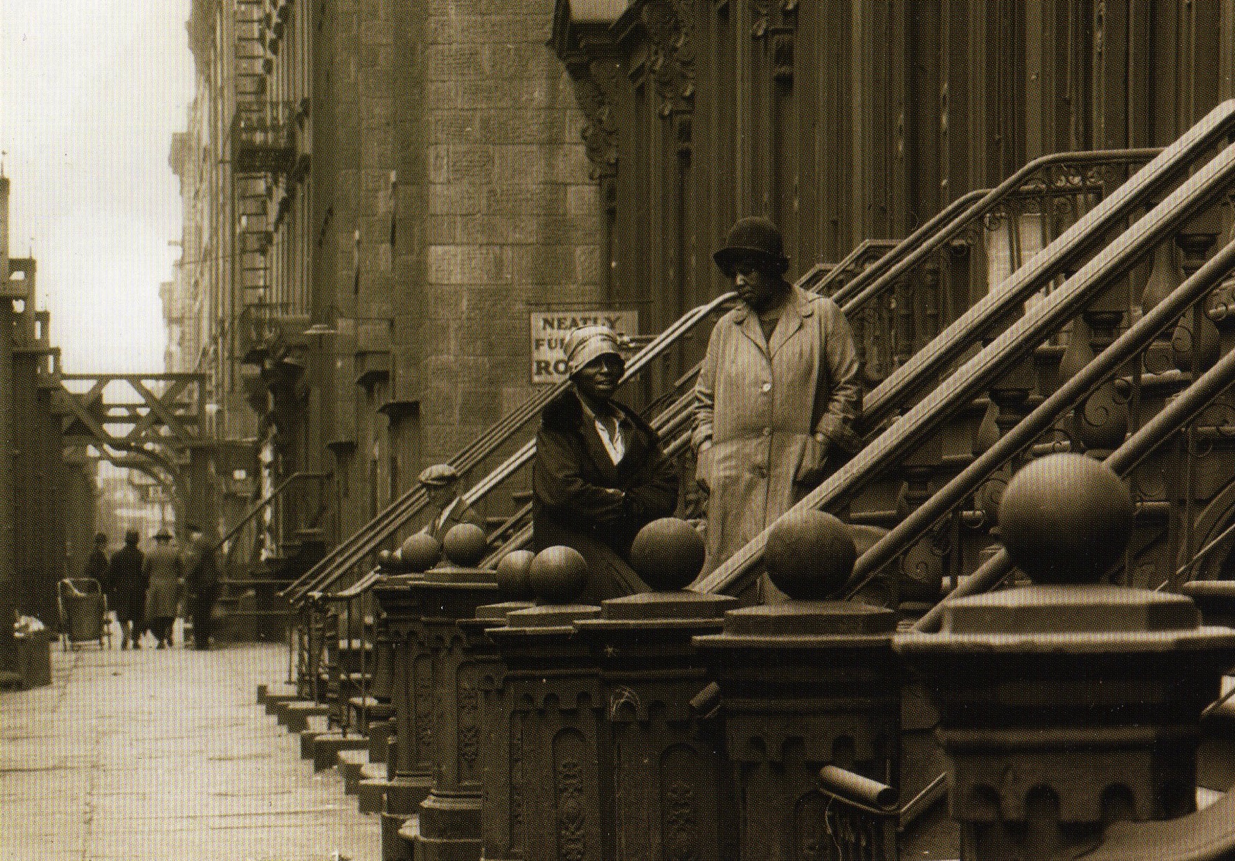 two women on a stoop. postcard caption reads: NYC Tenement Series #110. West 53rd St., Manhattan – 1927